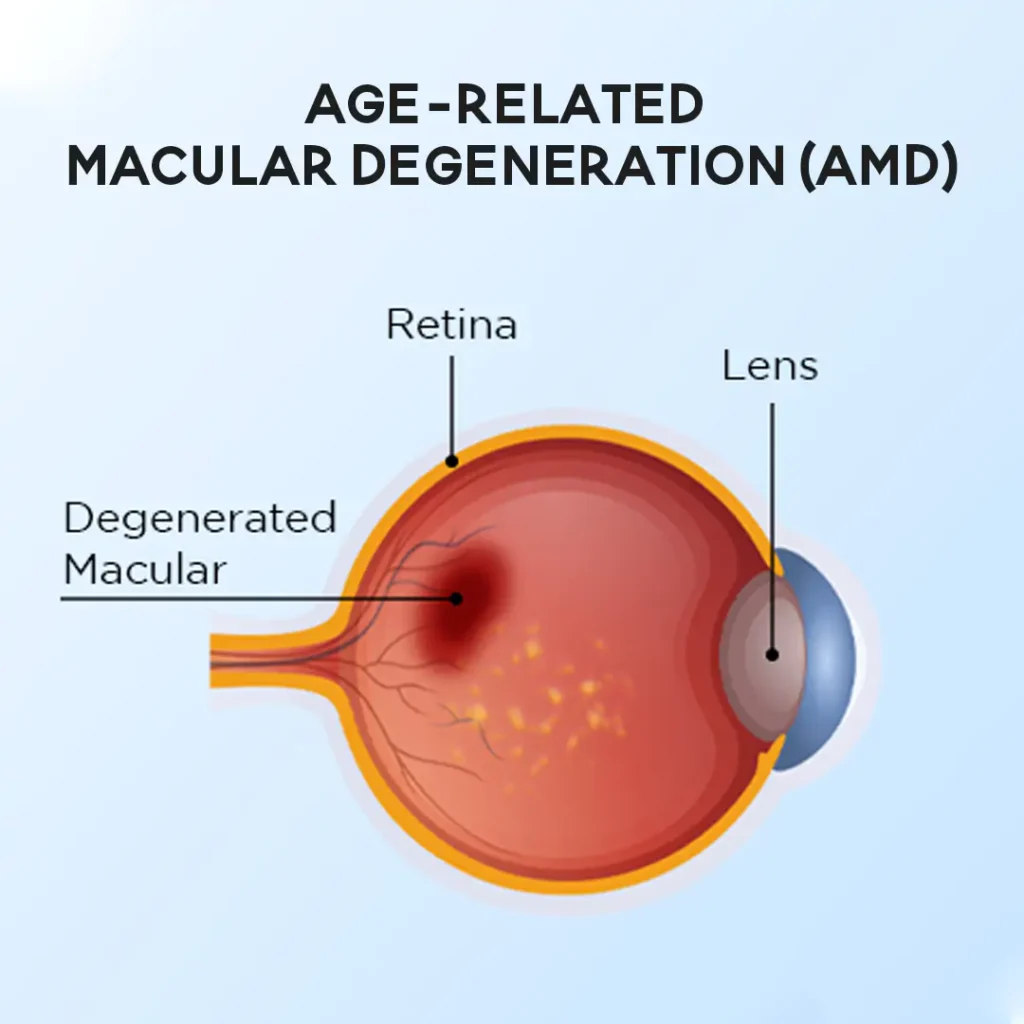Age-Related Macular Degeneration (AMD) is a common eye condition and a leading cause of vision loss among people aged 50 and older. It causes damage to the macula, the small central area of the retina that controls visual acuity.